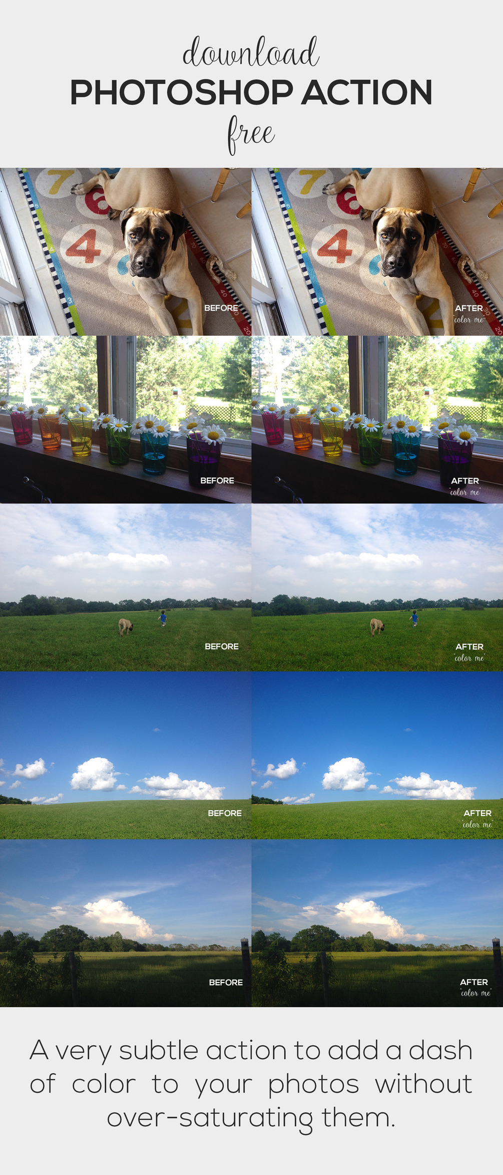 Add a dash of color to your photos with one click without over-saturating them. One action included. Download completely free. For personal and commercial use.
